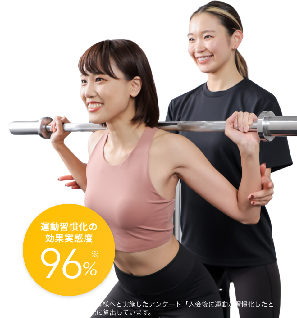 入会される90%のお客様が運動初心者なので、パーソナルトレーニング初めての方でも安心