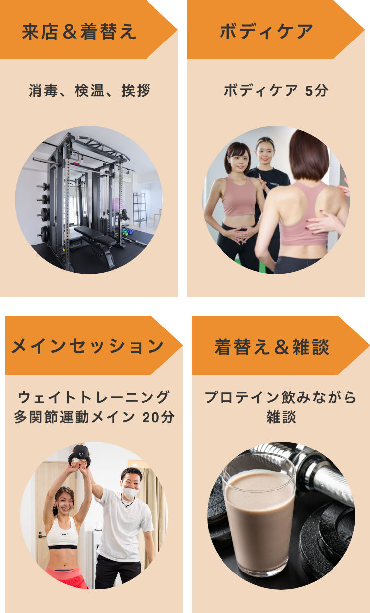着替えや準備といった、ジムに来て運動をするまでのハードルを徹底的にさげました。