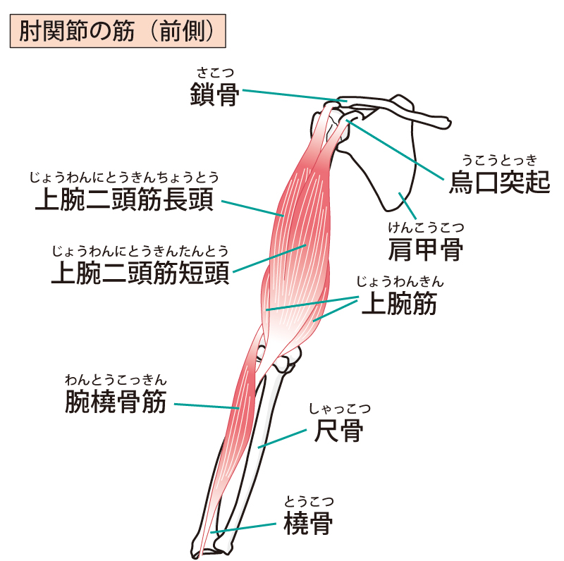 上腕二頭筋と上腕筋は、肘を曲げて物を持ち上げる動きをサポートする筋肉です。