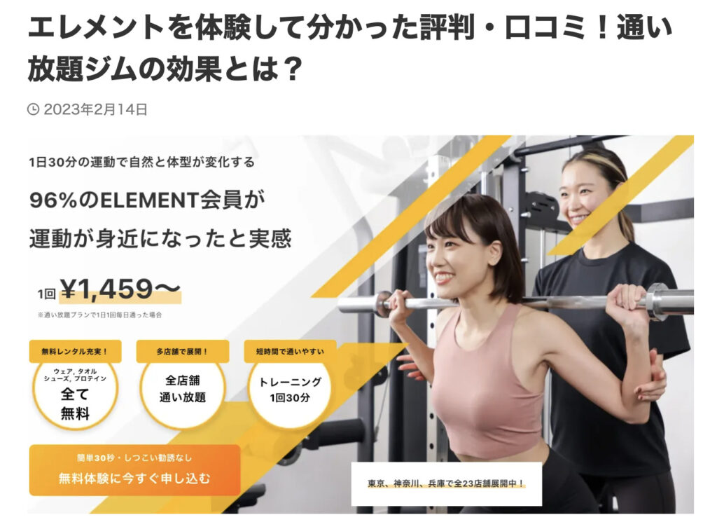 MICHFIT様の「エレメントを体験して分かった評判・口コミ!通い放題ジムの効果とは?」に掲載いただいております。
