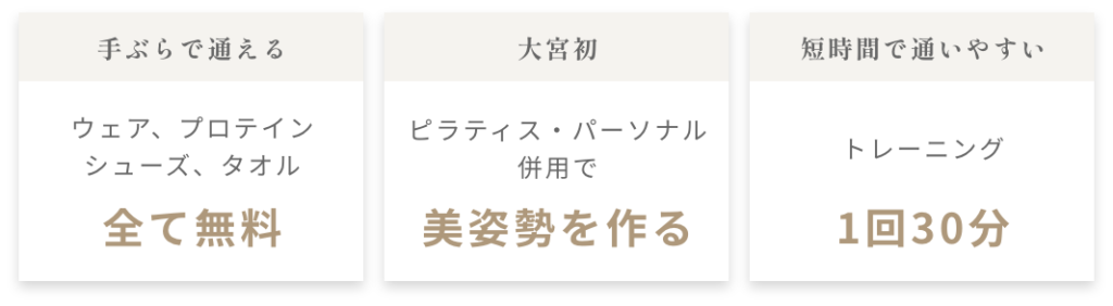 大宮EIGHTのマンツーマンのマシンピラティスはパーソナルジムの施設も隣接している為、ピラティスだけでなく