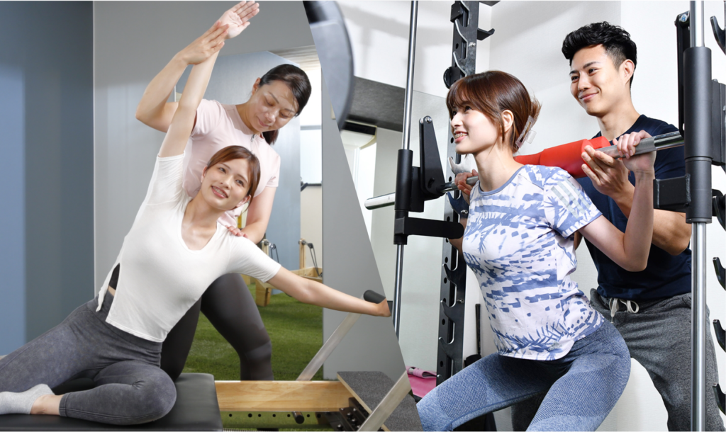 ご⾃⾝に合ったマンツーマンのマシンピラティスとパーソナルトレーニングの組み合わせが可能!!