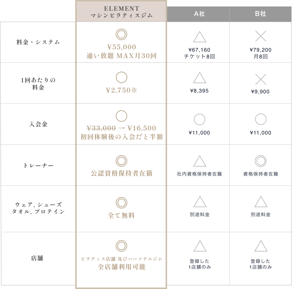 マシンピラティスジム ELEMENTでは、プロのトレーナーが指導にあたります。(トレーナー資格保持者もしくは早期資格取得を目指すトレーナーのみ)