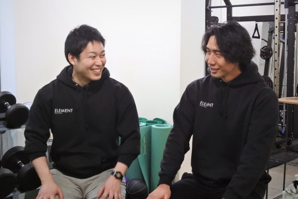 これまでの1000名超の運動の習慣化を支援してきたが、ELEMENTにとって欠かせないのがトレーナーの存在。様々な経験・スキルを持つトレーナーが多数在籍しているが、トレーナー未経験でELEMENTに入社をした社員も少なくない。今回は、未経験からトレーナーに転身した小林義人氏と濱本広太郎氏に、入社を決めた理由やどのようにスキルを磨いていったのか話を聞く。