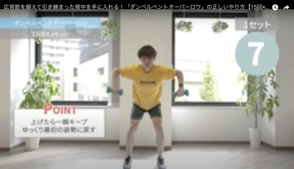 ダンベルベントオーバーローは厚みのある引き締まった背中を作る、背面バルクアップに欠かせないエクササイズ。肩こりを招く主要な原因筋肉でもある僧帽筋の強化にも効果があります。