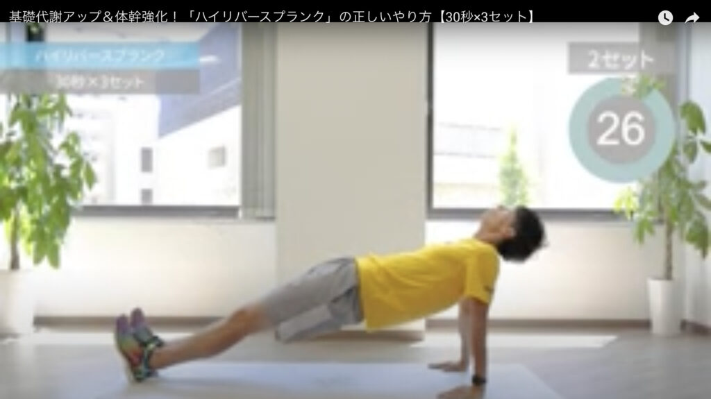 床に四つん這い姿勢で行う方法もありますが、今回はより安定性が高く膝に負担を掛けないバージョンを紹介します。