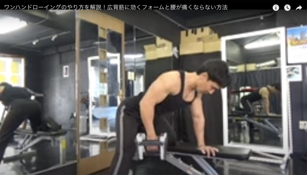 類似エクササイズ・ベントオーバーローイングではバーベルを使いますが、ワンハンドローイングではダンベルを使うため自宅での取り組みやすさも魅力。