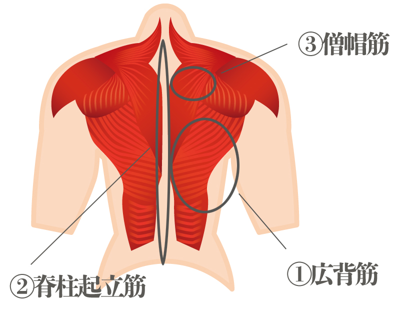 まずは背筋を構成する3種類の筋肉を押さえましょう。