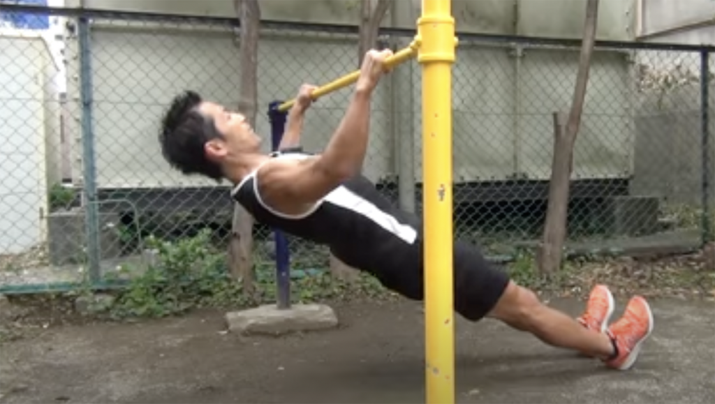 ⑦チンニング(ななめ懸垂)【僧帽筋】