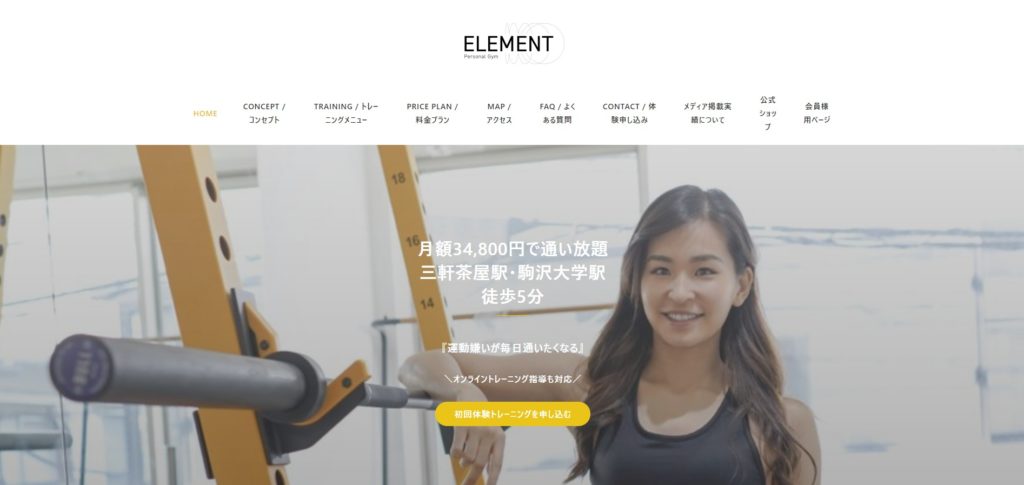 当ジムELEMENTは月額34,800円でパーソナルトレーニングが受け放題のパーソナルジムです。