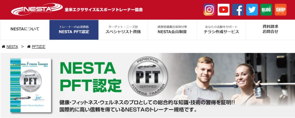 資格名NESTA PFT(NESTA公認パーソナルフィットネストレーナー)