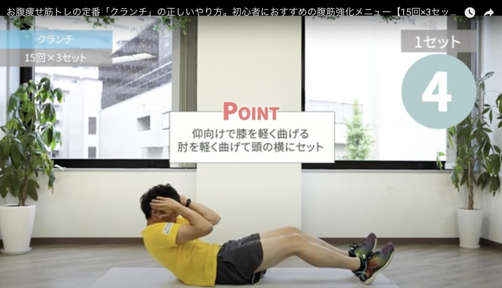 最短で腹割りしたい、美しい縦線を目指したい人にはおなじみの種目ですが、バリエーションも多い奥の深さが魅力。初心者でも取り組みやすく、腹直筋上部に刺激が入るエクササイズです。