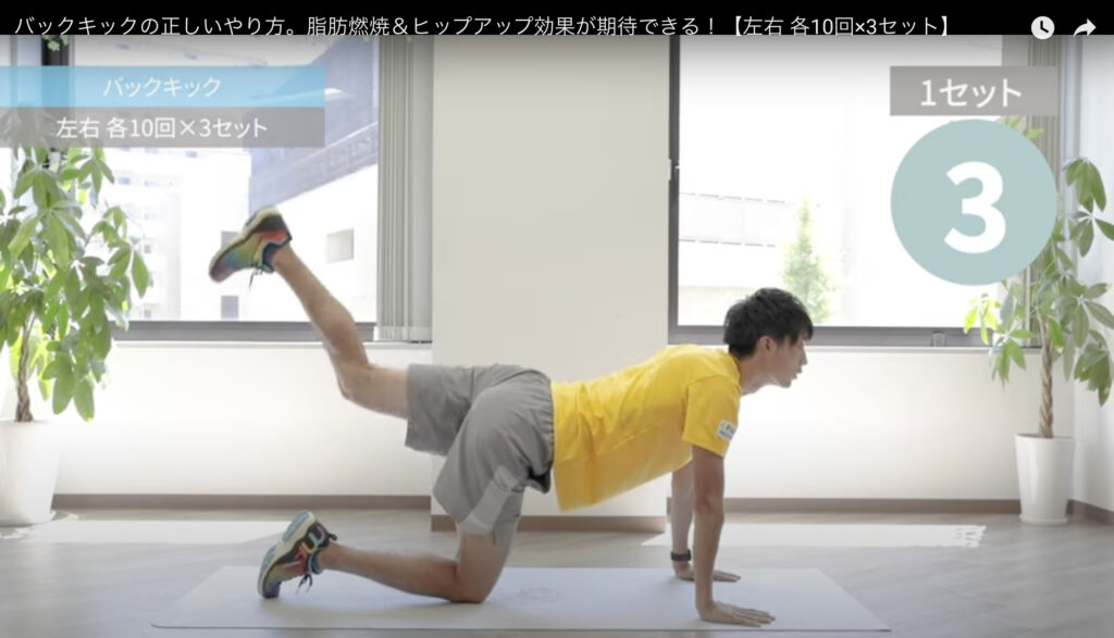 バックキックはたるんだ大臀部(お尻)の引き締めやヒップアップに効果的な、下半身強化と脂肪燃焼を同時に行える筋トレ
