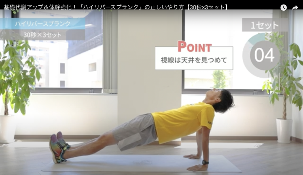 ハイリバースプランクはスクワットと同様に、基礎代謝の向上や下半身を強化できる人気の自重トレーニング。耐久時間より正しいフォームで行うのが効果を上げるコツ。