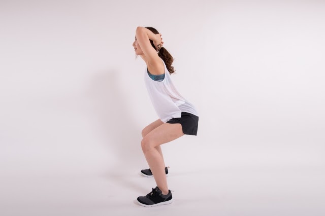 2.膝が90度になるよう曲げ腰を落とし、そのままジャンプ