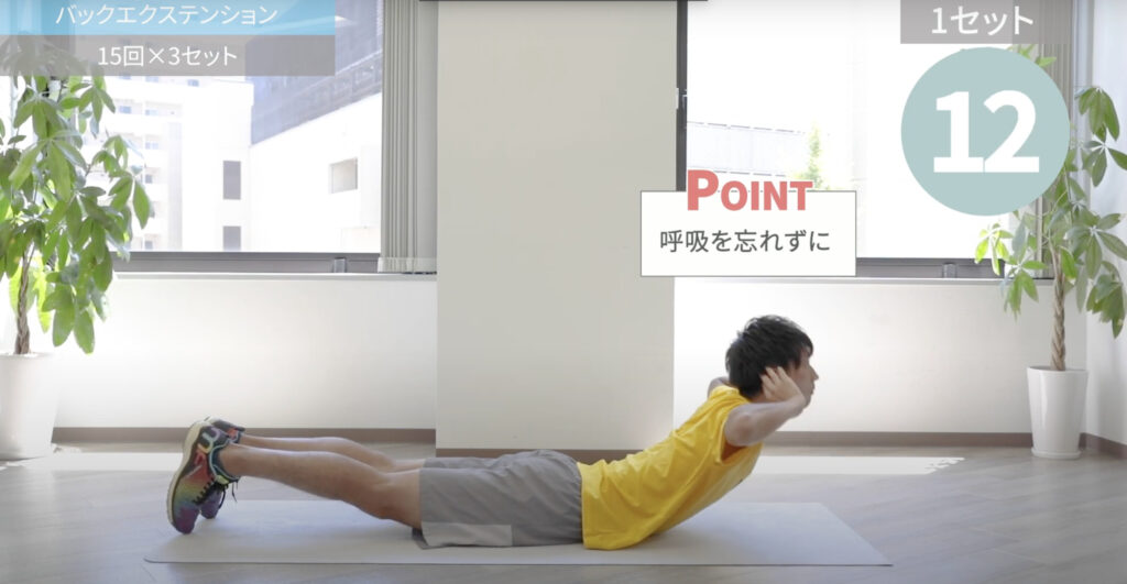 ・反動をつけず、背筋や腹筋の力で手足を持ち上げる